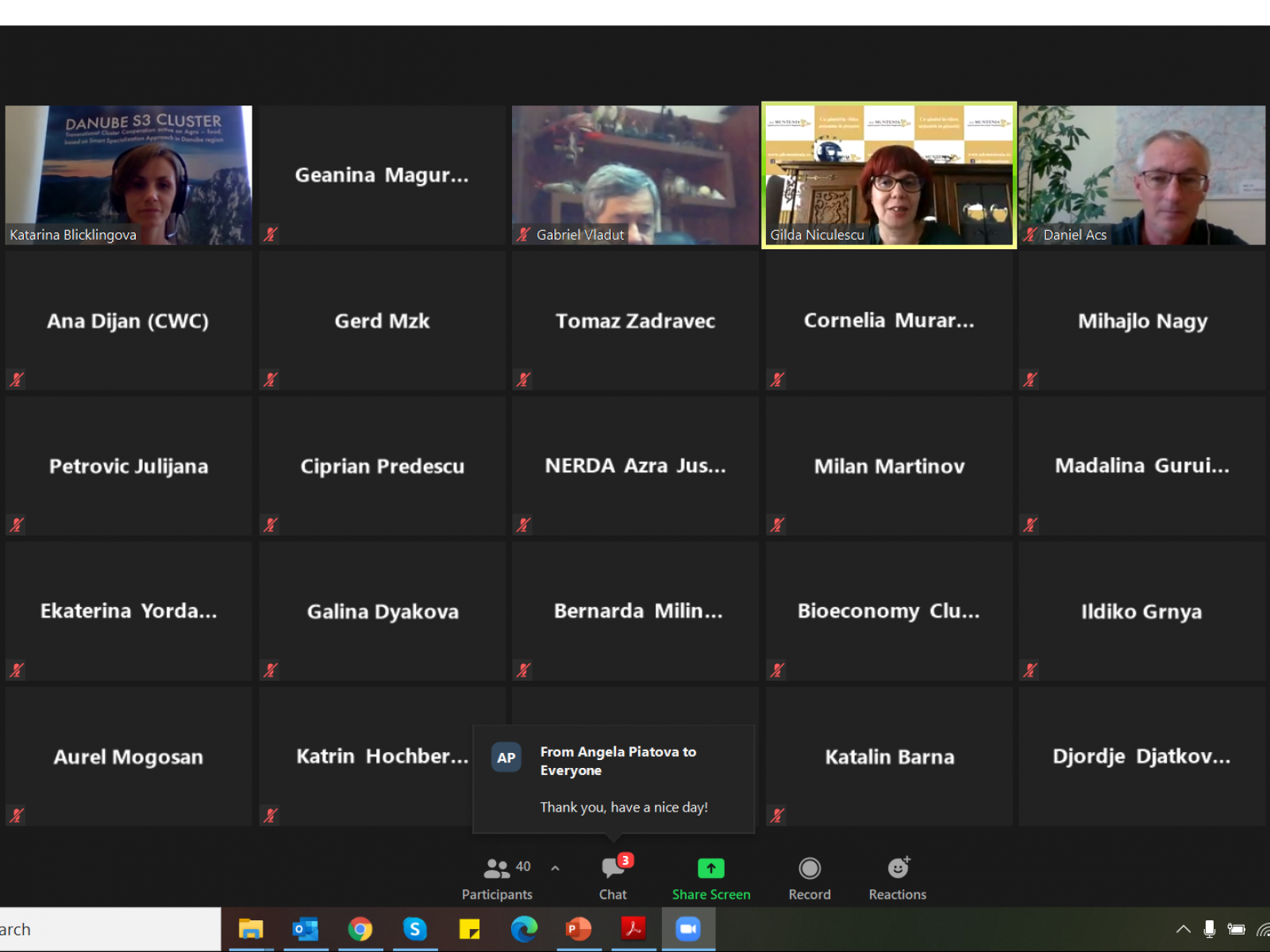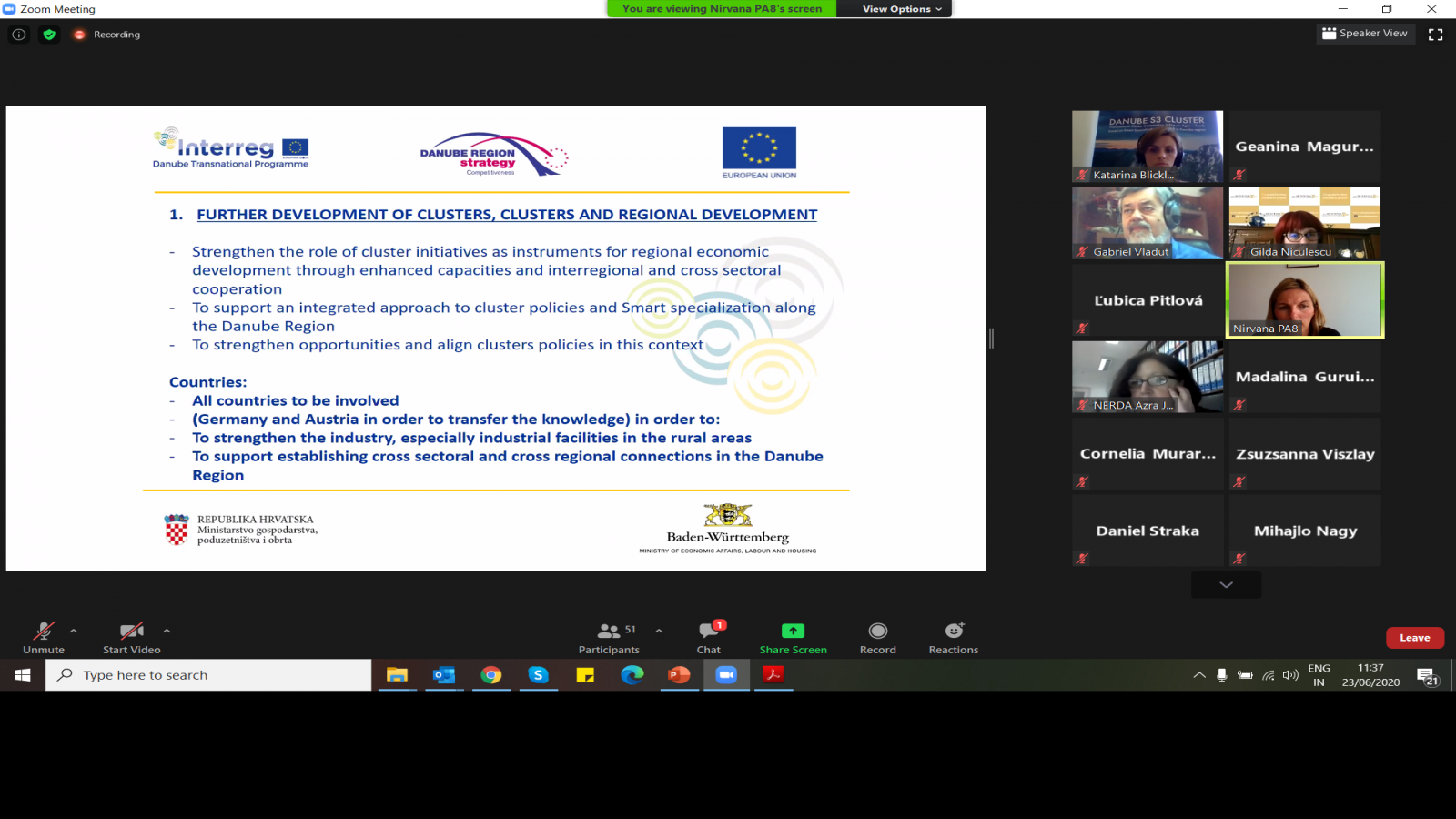 Printre lectorii evenimentului s-a numărat și domnul Miroslav VESKOVIC, din partea Centrului de Cercetare Comun (JRC), care a prezentat Pactul Ecologic European, platformele de specializare inteligentă pentru domeniile Bioeconomie și sectorul Agroalimentar, precum și noul plan de acțiune SUERD care are ca scop conectarea acțiunilor macro-regionale ale Dunării cu noile priorități ale Comisiei. De asemenea, Antonio Novo, președintele Alianței Europene a Clusterelor a prezentat activitatea alianței în lupta acesteia împotriva efectelor asupra mediului economic generate de coronavirus. Totodată, s-au discutat și aspecte legate de elaborarea strategiilor de specializare inteligentă din regiunea Dunării, punctele forte și punctele slabe ale acestora, precum și guvernanța, finanțarea, evaluarea și monitorizarea acestora.