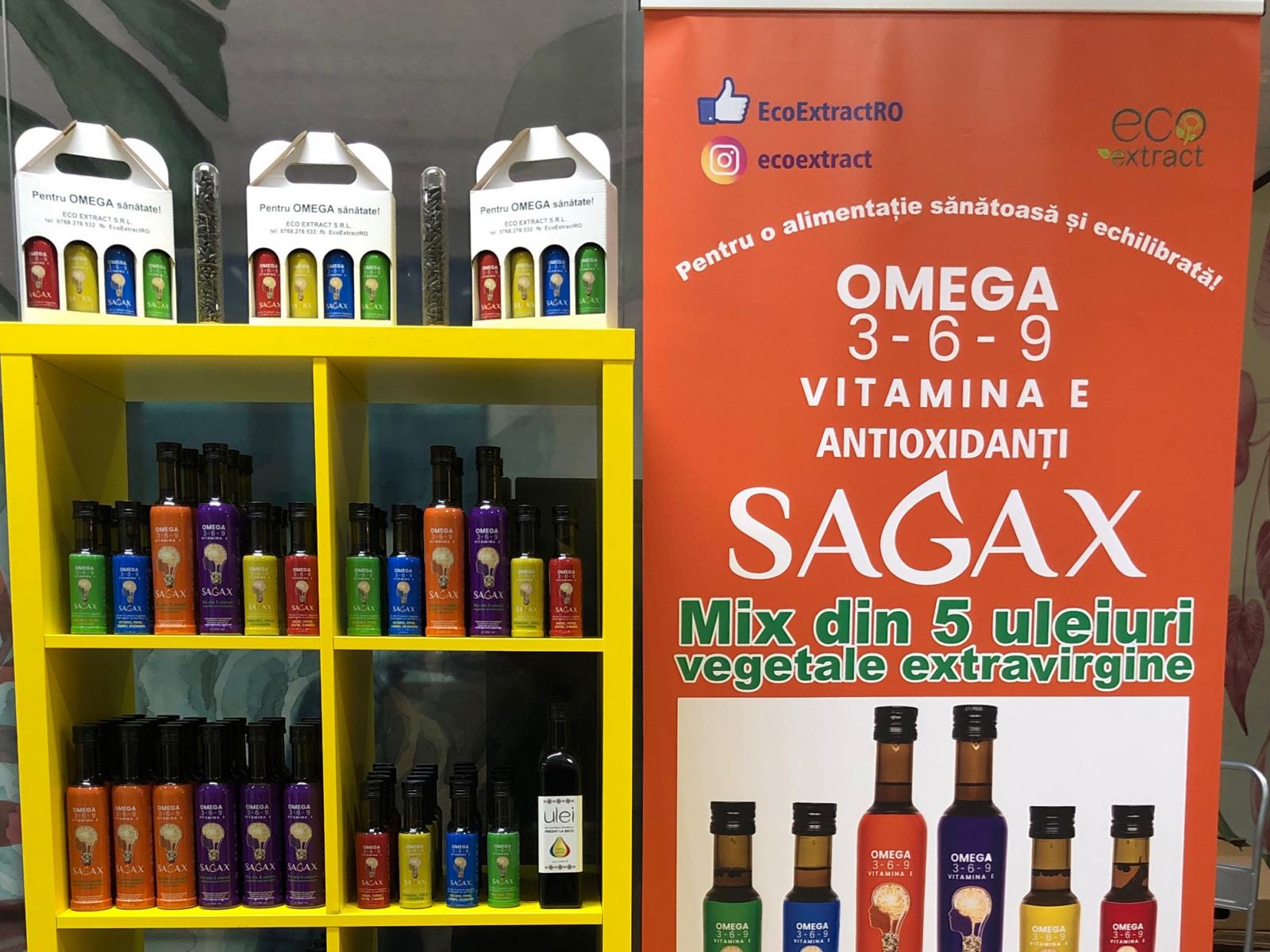 Pentru a putea intra pe o piață suprasaturată, dominata de uleiurile rafinate, Eco Extract a creat o nișă de piață prin dezvoltarea unor produse unice, si anume: mixuri de uleiuri presate la rece. În 2018, compania a dezvoltat împreună cu o echipă de cercetători din cadrul Institutului Național de Cercetare-Dezvoltare pentru Bioresurse Alimentare o gama de uleiuri alimentare, denumită SAGAX. Acesta este un mix din 5 uleiuri vegetale extravirgine presate la rece, compus din semințe de floarea soarelui, rapiță, in, cânepă și dovleac, care are raportul optim între acizii grași Omega 3 și Omega 6 (acesta fiind 1 : 3), de care are nevoie organismul uman, și conține nutrienții necesari în procesele metabolice. Printre beneficiile consumului de ulei SAGAX, se numără: dezvoltarea memoriei și a rezistenței la stres, acuitate vizuală superioară, reducerea riscului bolilor cardio-vasculare, reducerea inflamațiilor, ajută la menținerea greutății normale, etc.