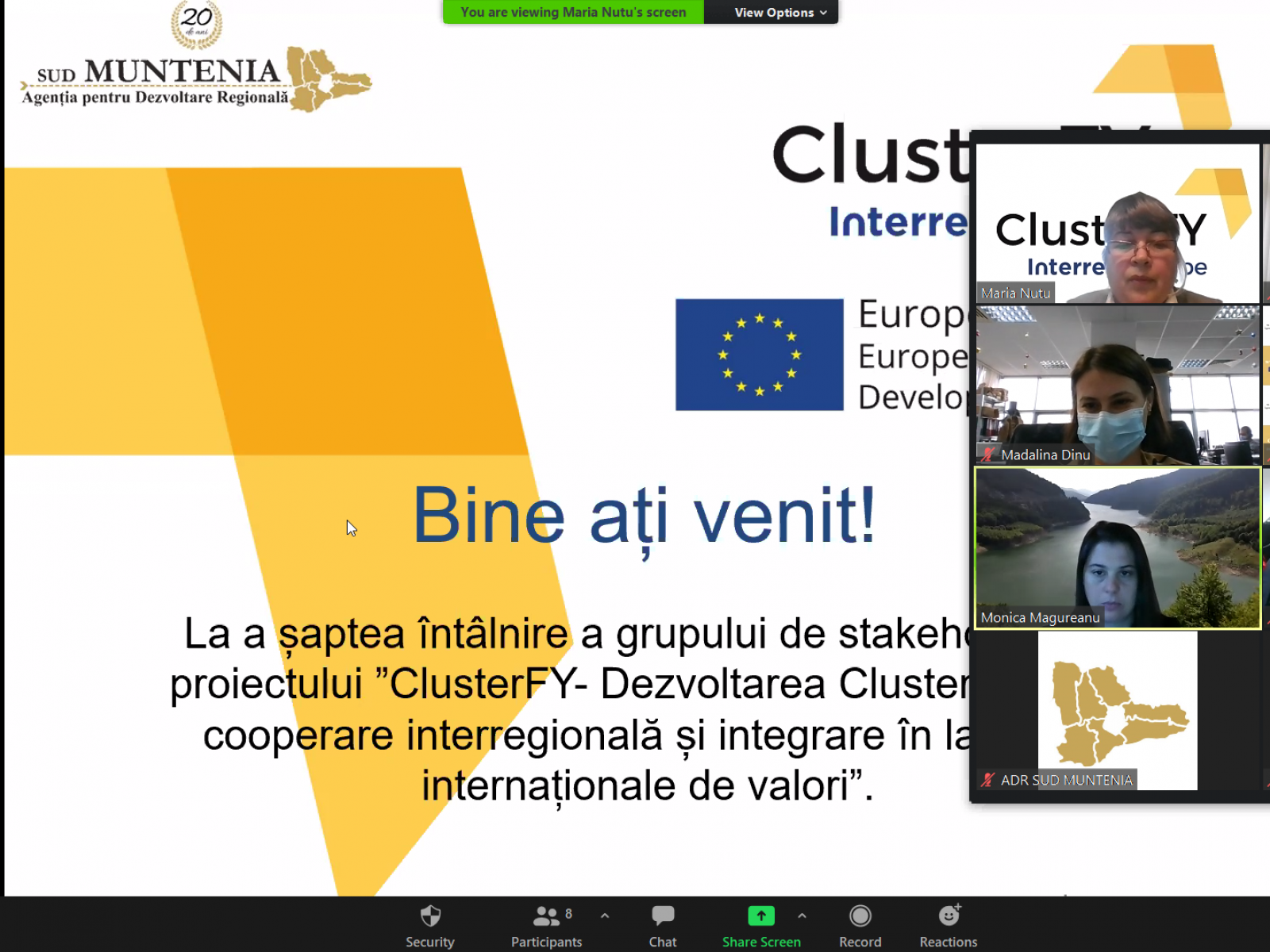 Întâlnirea a constituit un bun prilej pentru a discuta despre stadiul implementării Planului de acțiuni al proiectului, precum și despre contextul european, național și regional pentru pregătirea perioadei de programare 2021-2027. Au fost prezentate activitățile ce au avut loc pe parcursul primului an de implementare a Planului de acțiuni în condițiile pandemiei Covid-19.